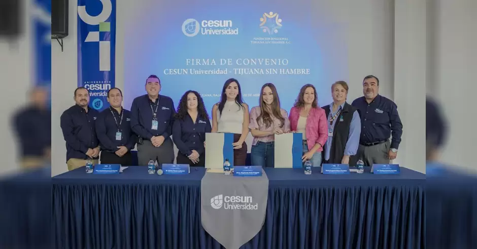 TIJUANA.- Con el objetivo de fortalecer el impacto social en la región, CESUN Universidad y la Fundación Tijuana Sin Hambre formalizaron un convenio de colaboración que permitirá la participación activa de estudiantes en iniciativas dirigidas a sectores vulnerables de la ciudad.