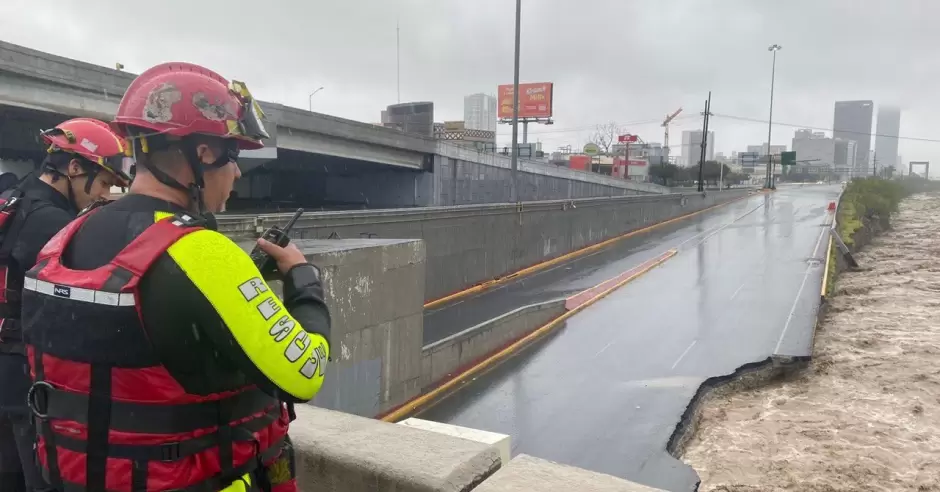 (EL UNIVERSAL).- Como sucedió en el Huracán "Alex" en el 2010, parte del carril exprés de la Avenida Constitución colapsó debido a la fuerza del cauce del río Santa Catarina, que ya se encuentra en el 78 por ciento de su capacidad.