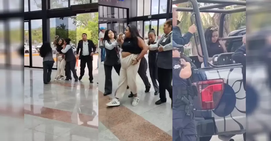 En las grabaciones se observa a la mujer, vestida con blusa negra tipo top y pantalones beige, siendo interceptada antes de salir de la plaza. Cuatro gerentes femeninas la retuvieron mientras ella forcejeaba, al tiempo que un empleado bloqueaba la salida y otro revisaba el contenido de la bolsa que portaba. Dentro de esta se localizaron 17 perfumes.