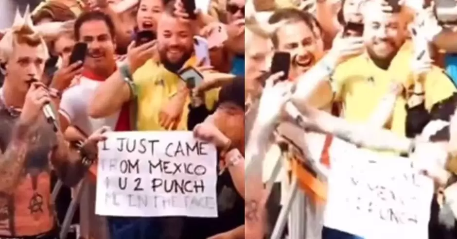 CIUDAD DE MÉXICO, (EL UNIVERSAL).- Durante uno de los recientes conciertos del cantante de rock Machine Gun Kelly, quien mantiene una relación con la actriz Megan Fox, las cosas tomaron un giro un tanto peculiar cuando uno de sus fanáticos sorprendió a todos al hacerle una inusual solicitud: que lo golpeara.