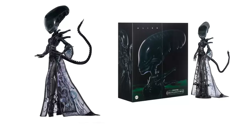 El nuevo modelo, denominado Monster High® Skullector™ Alien, se presentó oficialmente el 17 de octubre y fue diseñado como una reinvención "terroríficamente elegante" del famoso extraterrestre creado por H.R. Giger.