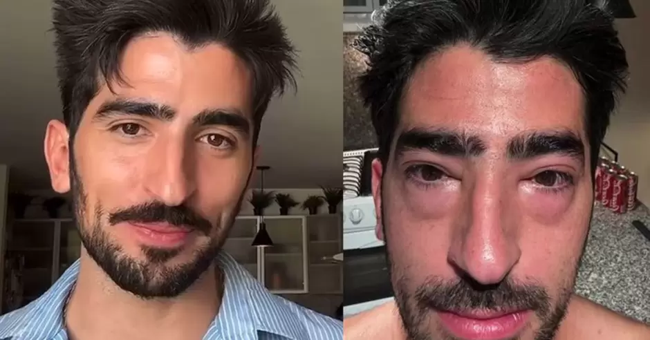 En lugar de tener una experiencia relajante, al influencer se le inflamó la zona de los ojos por la posición en la que estuvo.