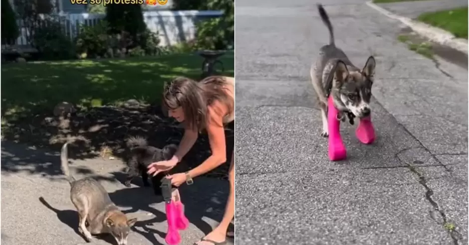 Por medio de TikTok, el medio El Comercio Perú compartió el video donde se aprecia a la mascota utilizando por primera vez las prótesis.