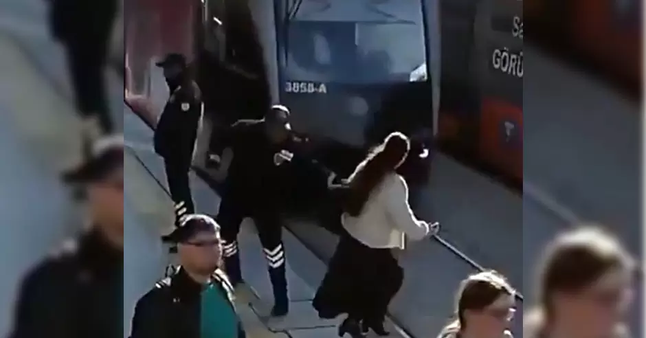 El incidente, registrado por cámaras de seguridad, ocurrió en la ciudad de Kayseri, cuando la mujer cruzaba las vías sin percatarse de la cercanía del tranvía. En el momento crítico, el guardia reaccionó con rapidez y la apartó del peligro apenas unos segundos antes del impacto.