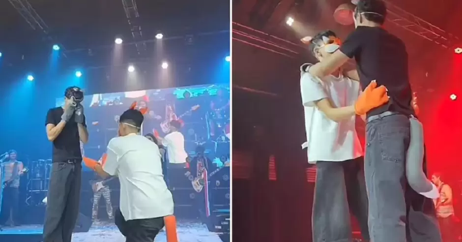 El romántico momento sucedió arriba del escenario, donde la pareja con máscara y colas de zorro se comprometieron mientras sonaba una de las canciones de la banda.
