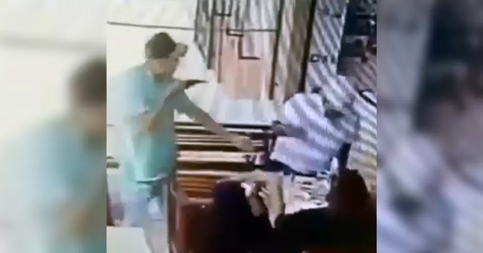 En las imágenes se observa cómo un sujeto armado con un revólver ingresa al establecimiento, amedrenta a los presentes y golpea a uno de los comensales. En ese momento, un hombre que se encontraba en el lugar, y que posteriormente se confirmó como agente policial, reacciona de inmediato, desenfunda su arma y dispara contra el agresor.